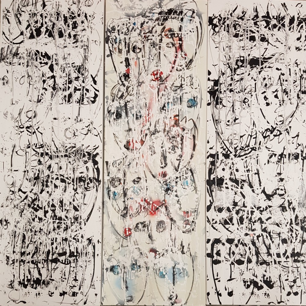 1Peinture Acrylique sur triptyque : 3 toiles de 40x120cm.